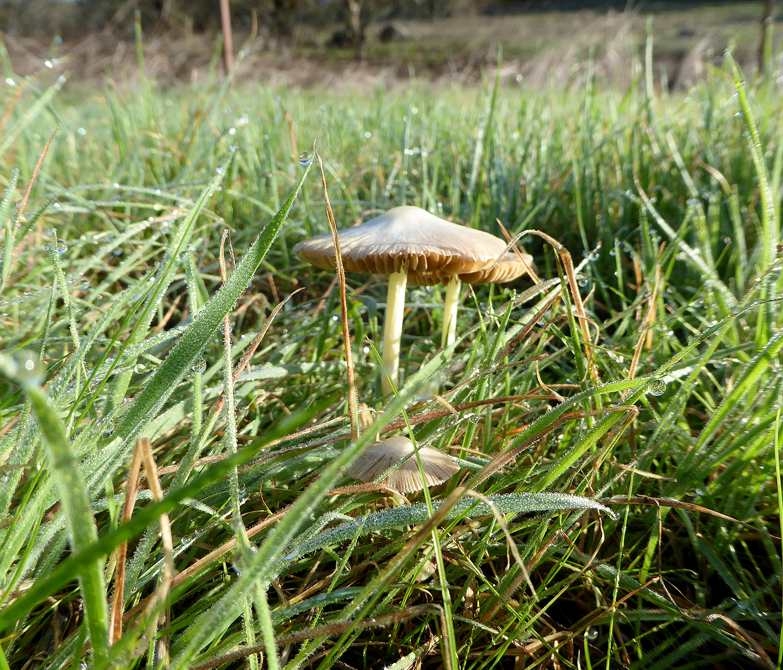 The two kinds pictured above are of course just a couple of many, many different kinds of fungi found in Northern California. And since positive identification can be difficult if you aren’t an expert, you won’t find me climbing out on that particular limb. But that doesn’t meant that I can’t appreciate their diversity, color, and sheer exuberance in pushing up through a sometime thick layer of compost toward sunlight.