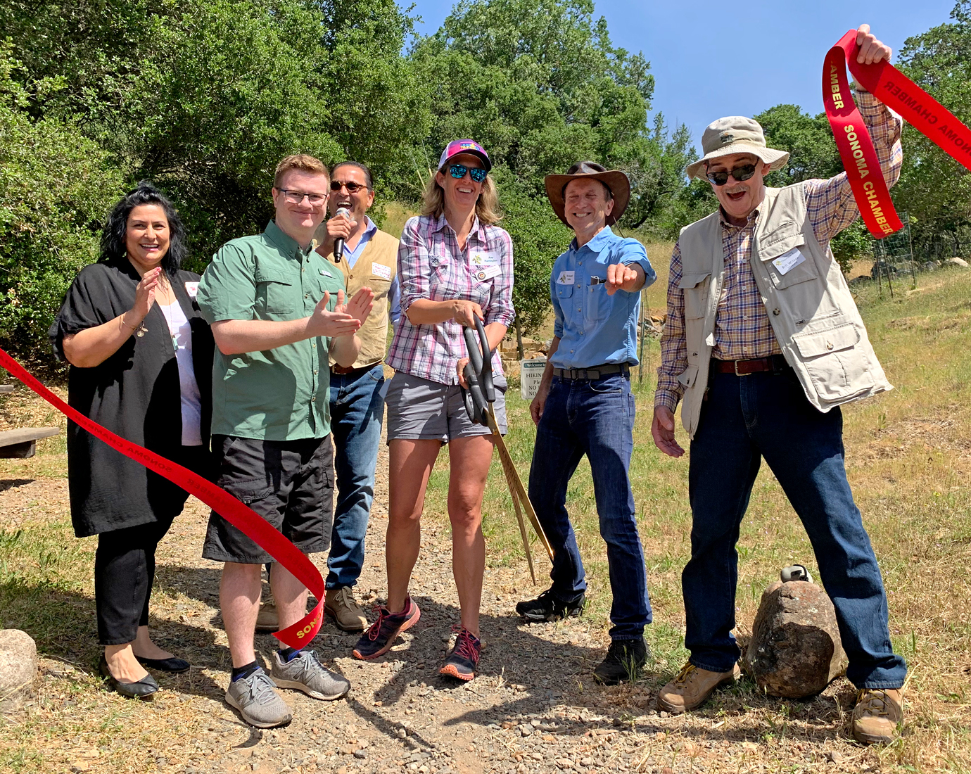 There was an enthusiastic ribbon cutting ceremony—Let the Hikes Begin! Rebecca Hermosillo for Congressman Thompson, Ezra Chabaan for Senator Dodd, Marcelo DeFreitas on behalf of Sonoma Alcaldessa Karen Collins, Amy Harrington Sonoma Mayor, Richard Dale Sonoma Ecology Center, Bill Wilson Project Manager.