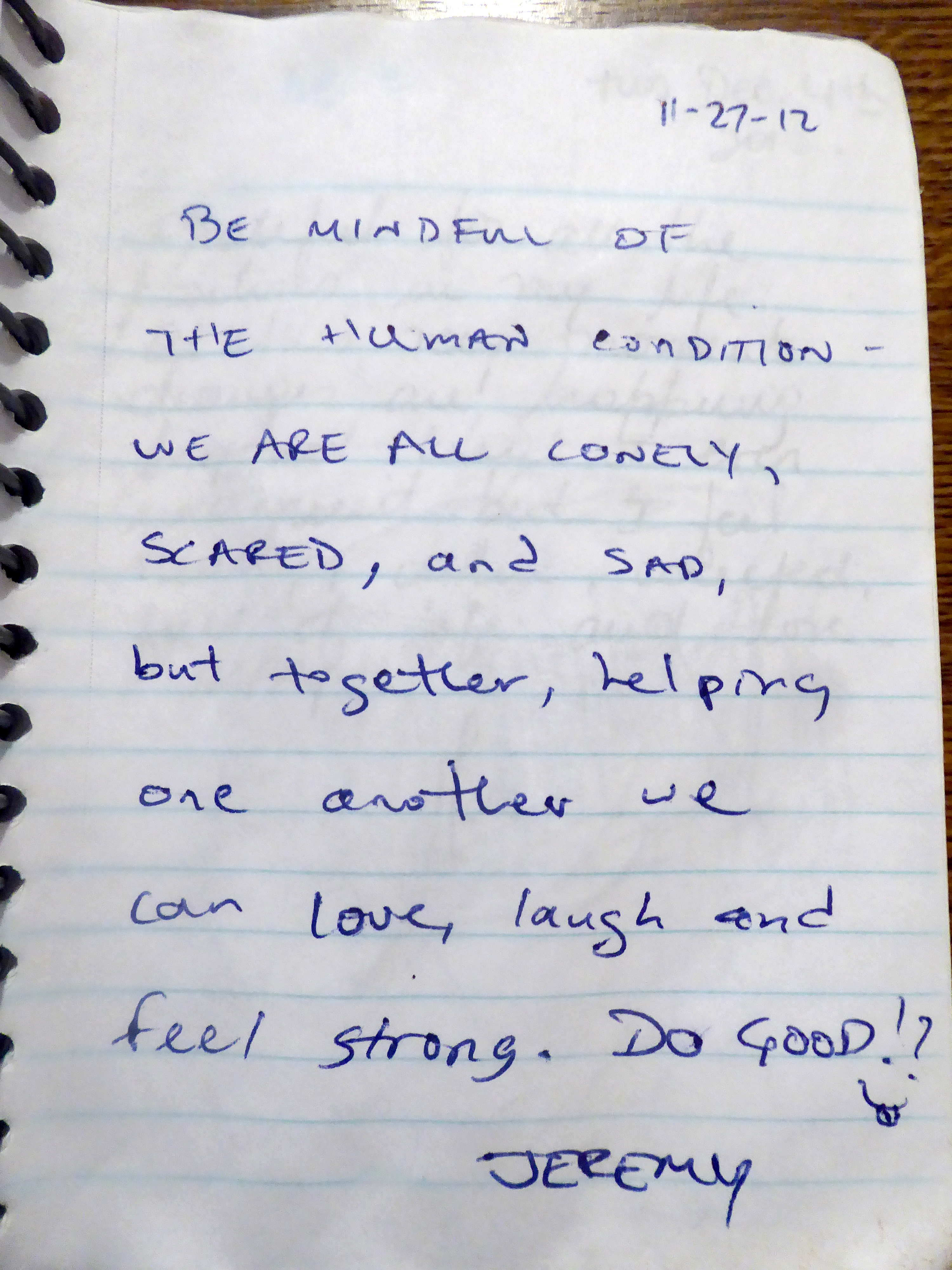 Our next hiker is intent on making us all feel better, and have more empathy and understanding for our fellow travelers. Jeremy, as he signs his post, advises us to “Be mindful of the human condition — we are all lonely, scared, and sad, but together, helping one another we can love, laugh and feel strong. DO GOOD!”