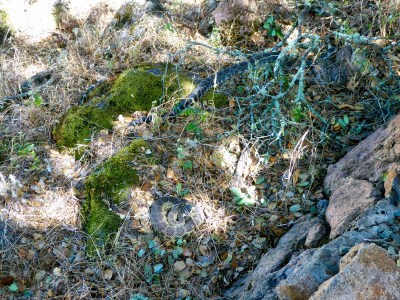 The location where they were sighted was off the trail to the left when going up Holstein Hill trail, just prior to the wide wheelchair turnaround spot, also called “Coyote Point.” Since one snake subsequently slid into a crevice in the rock wall, it’s possible that there is a den there, so be extra careful in that area.