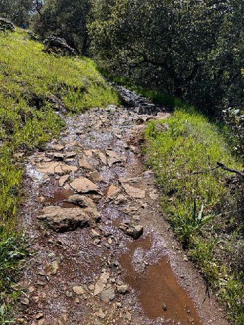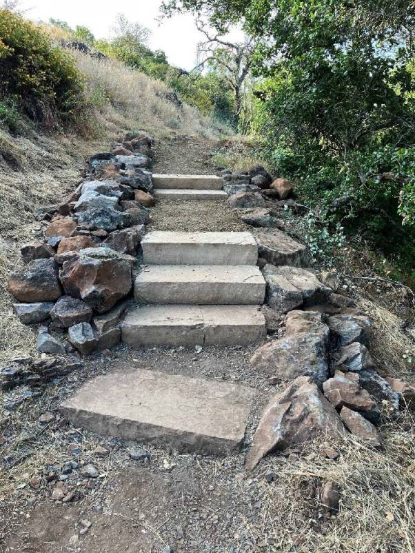 The entire trail bed rehabilitation has been completed right on time, conducted over 11 weeks by nonprofit organization American Conservation Experience (ACE) in partnership with the Sonoma Overlook Trail Stewards and the City of Sonoma. Additional steps, rock walls and drainage features have been installed to protect the integrity of the trail and to make the way more sustainable, walkable and enjoyable. These improvements should last for decades and make our jobs as Overlook Stewards much easier.