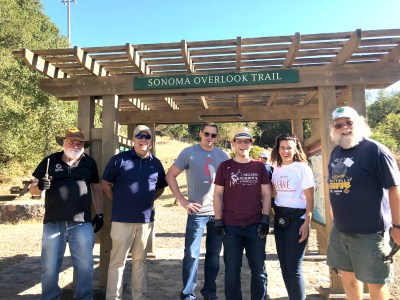 Being a volunteer Sonoma Overlook Trail steward is potentially a very diverse job. It may include arranging and managing fundraising events, organizing weekly hikes, developing, producing, and installing signs and interpretational materials, cutting water bars (ruts to direct water off the trail), writing grants to get funds to re-route and rebuild the trail, pulling invasive species, cutting branches intruding on the trail, or who knows what else. Let’s just say it’s a diverse set of potential responsibilities, and no single steward does them all. We tend to specialize.